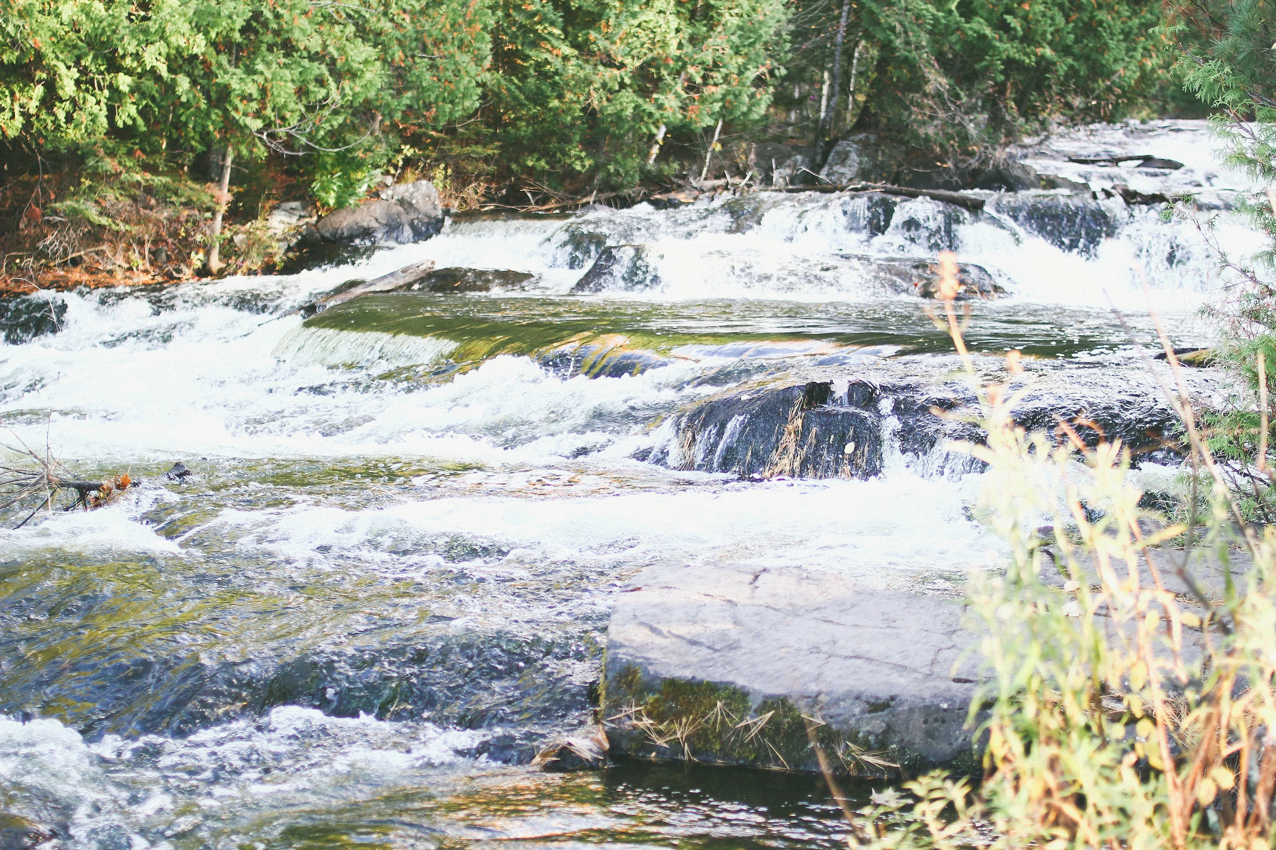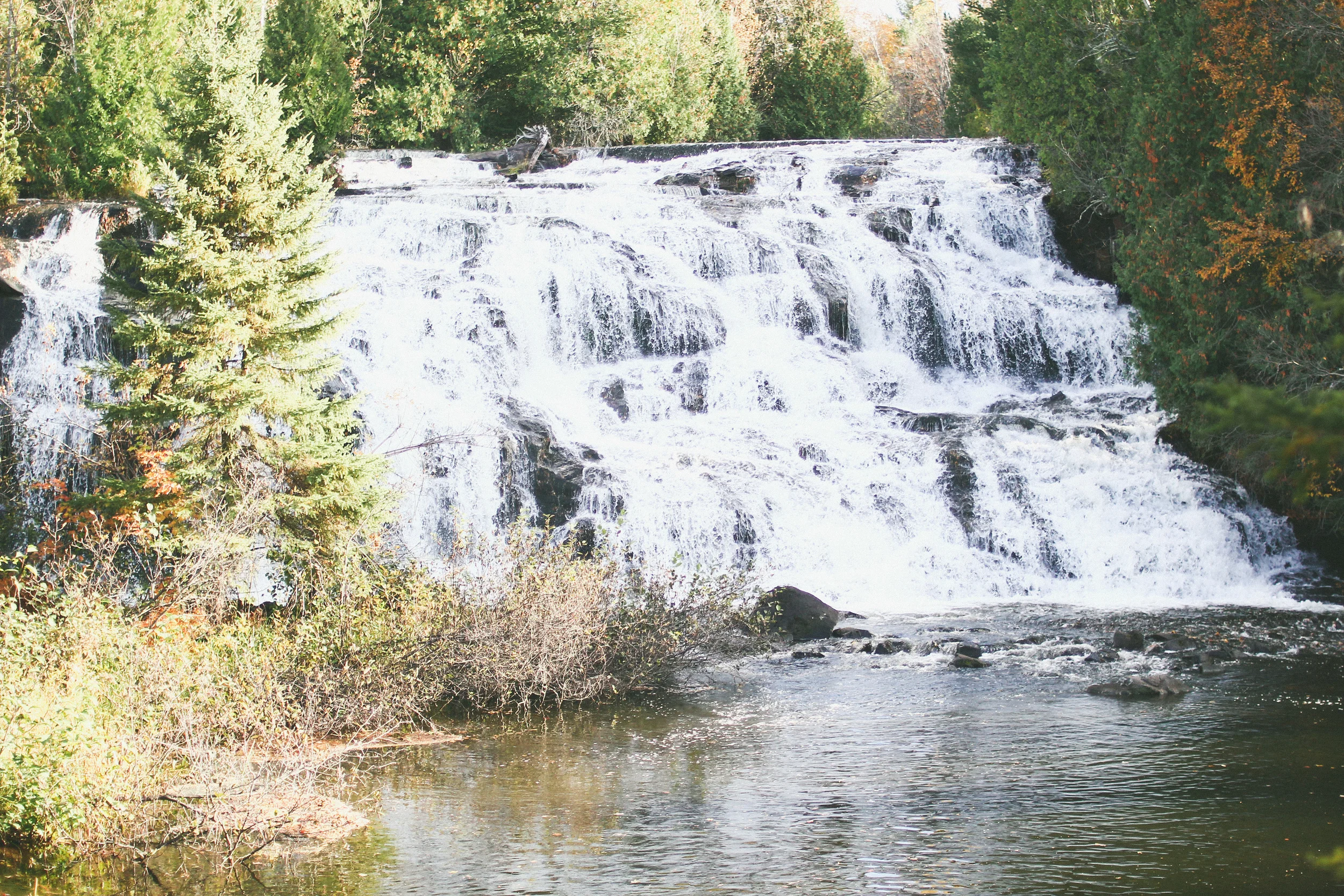 When we were up north in the Porcupine Mountains, we headed south to check out Bond Falls! Personally, I think it's one of the most beautiful falls in the upper peninsula (that I've seen). It was about an hour drive from downtown Ontonagon after we visited the lighthouse, but well worth the trip. Thankfully, we had the best weather, so we were able to climb out on the rocks and take some photos. It's located on the Ontonagon River, and has over six viewing locations, and three viewing platforms. You can pretty much see it at every angle, and climb out on the rocks at the bottom or top of the falls!