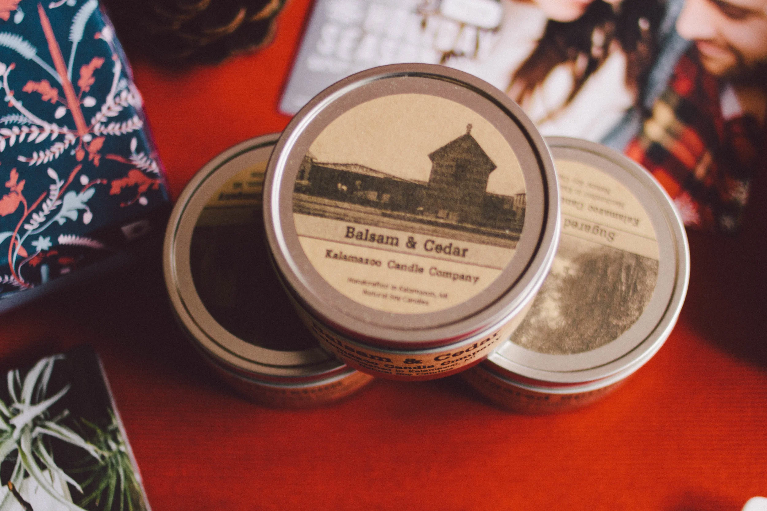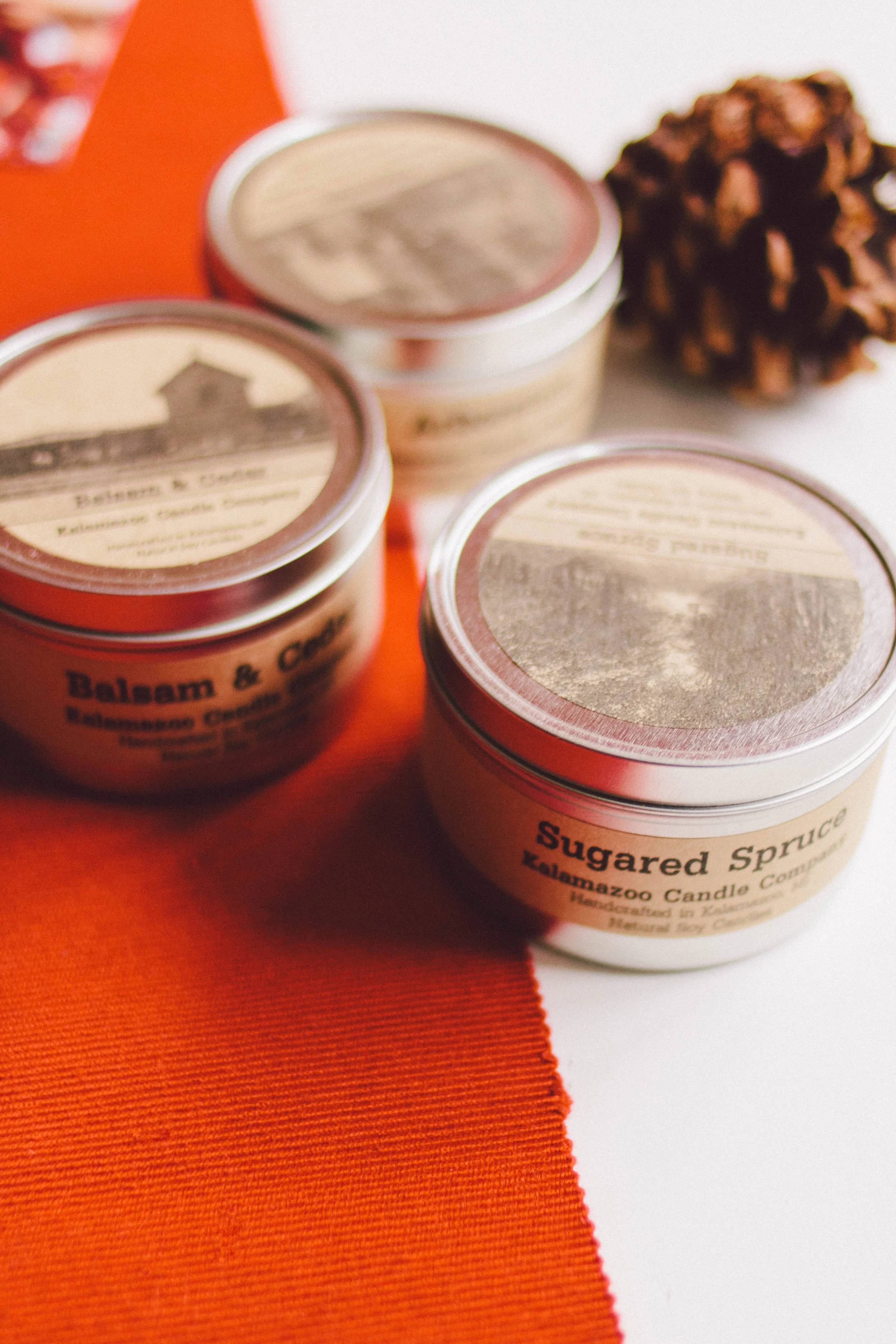 So I actually wrote about Kalamazoo Candle Co. last spring... but now I'm excited to share their fall/winter collection with you! I found them while perusing gift shops in Rockford, and fell in love with their designs and unique scents. Started by a guy named Adam, they are a local Michigan company (handcrafted right in Kalamazoo), and their candles are made with soy wax, paper wick and dye-free, so they're about as natural as it gets. Right now I'm absolutely loving their Sugared Spruce (smells like a Christmas tree), Balsam & Cedar, and Pumpkin Patch (on sale for $8!). Right now, they're offering 30% off all candles until Monday with code Santa... so head on over! Perfect gifts for Christmas, and you can feel good about shopping small business and local!