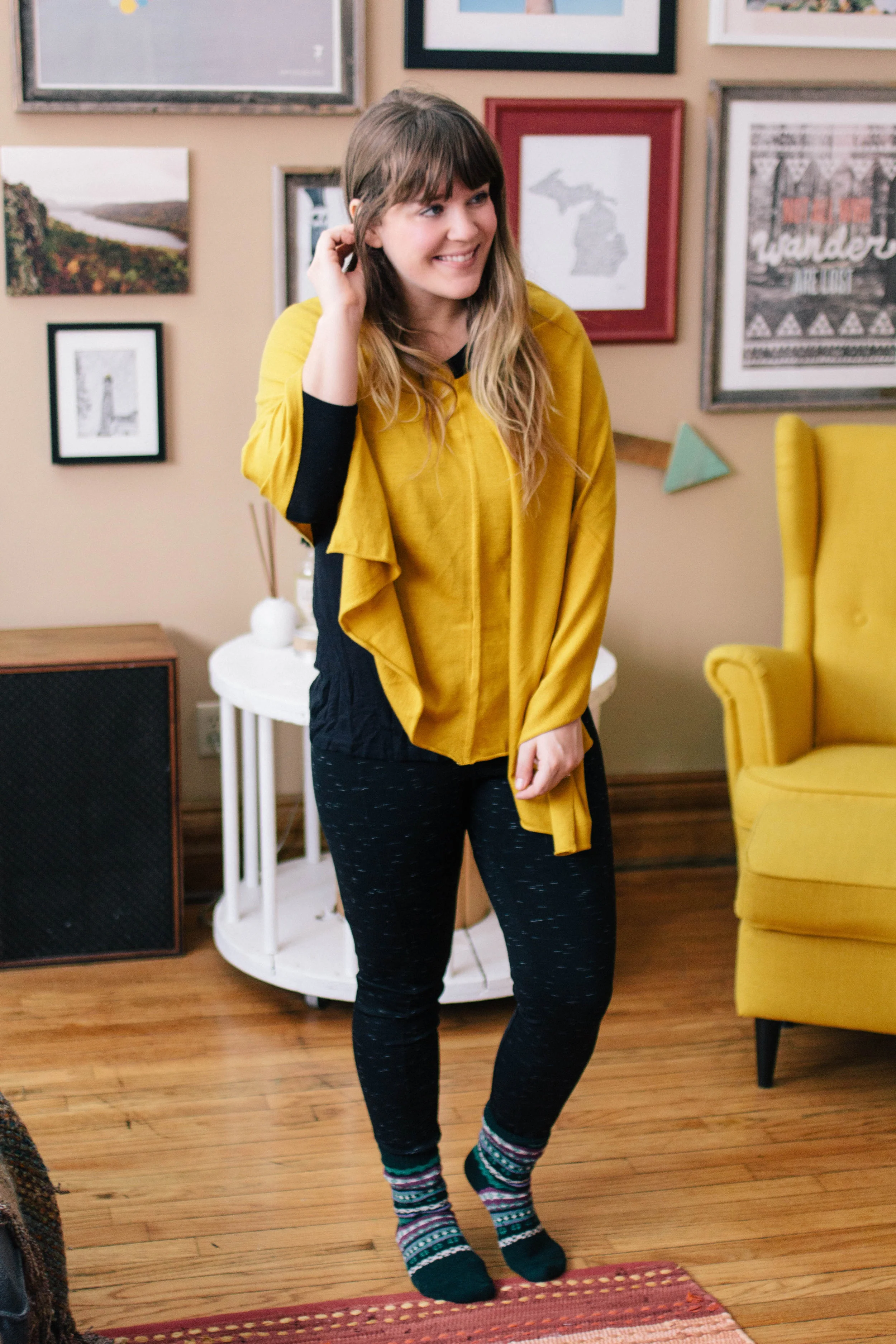 These items from L&B have been perfect for lounging around home this weekend! I'm in love with these Lysse Mara Ponte Leggings too. They hold everything in together (after lots of cookies this weekend), but are so comfortable! My favorite leggings are the ones you can wear out in public with a cozy cardigan, and keep on when you get home. Usually when I get home, I immediately take off my pants and put on PJs or leggings, but these stay right on after an outing! This Kerisma Eden Poncho is also available at L&B and can be worn at least 8 different ways, including into a scarf! Perfect item to carry with you in case you're feeling a little chilly. And last but not least, a pair of cozy patterned socks are essential this winter. These Hunter Kathleen Socks received a lot of of compliments this weekend. :)