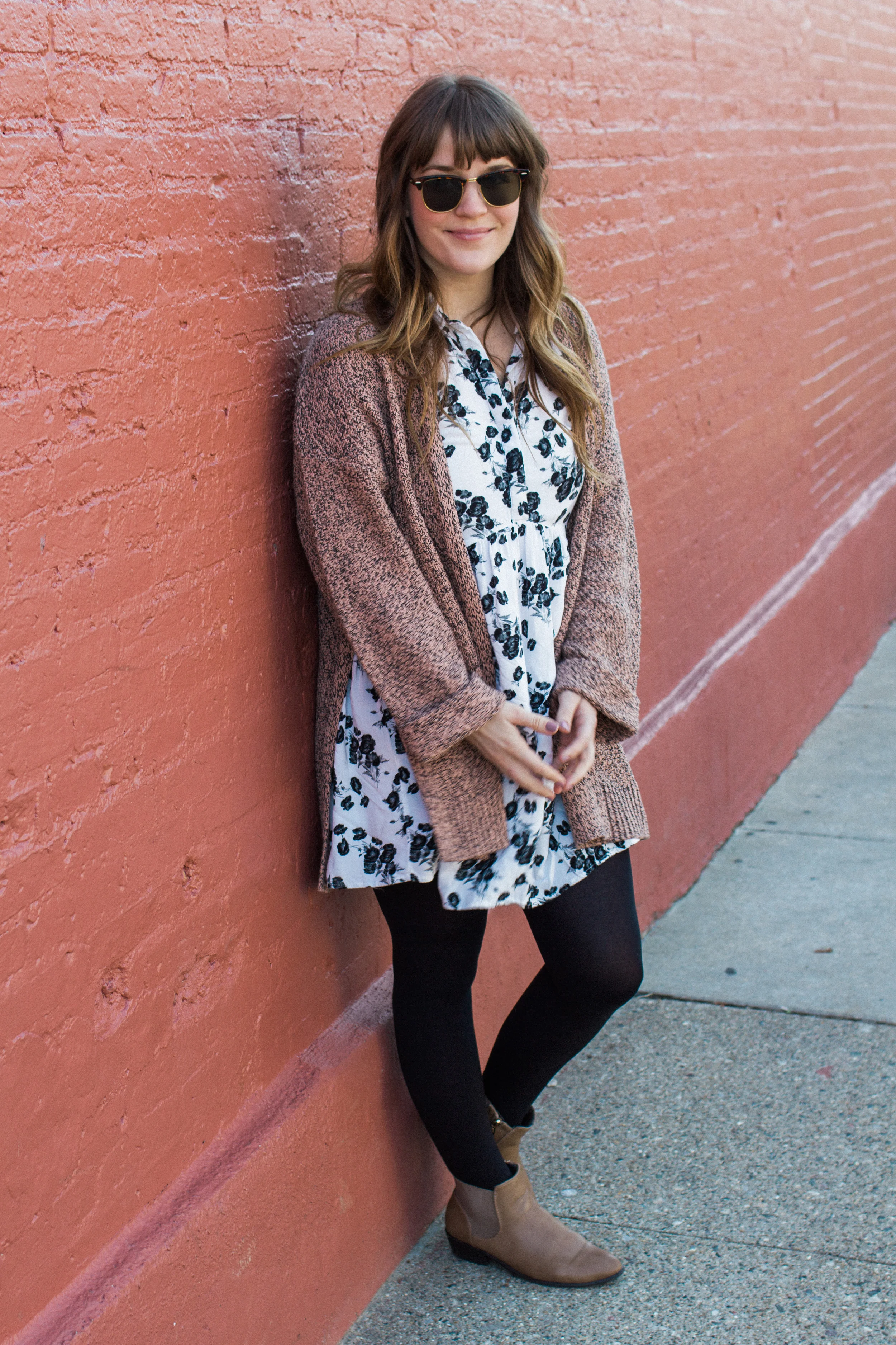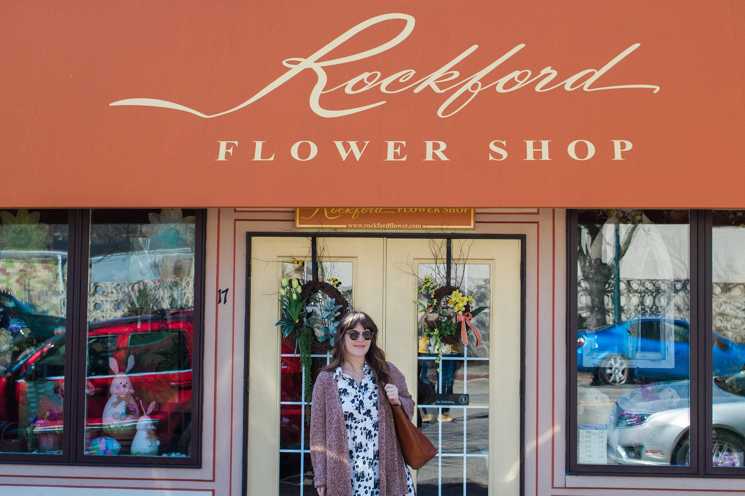I'm still in my cabin fever stage... where I just want to get out of the house and go! I spend so much time organizing our upcoming calendar, because I just can't wait for adventures and trips and warm weather! Until then, I thought it'd be fun to explore a few towns close to us! Rockford is just 15 minutes north of Grand Rapids, and the perfect place to hang out for an afternoon. We love to bike here in the summer on the White Pine trail too! Saturday was clear blue skies, but unfortunately it's a bit too chilly to get away with bare legs. I'm SO over tights... but it's okay. At least I got to break out a floral dress, and a new cozy cardigan I got on sale!