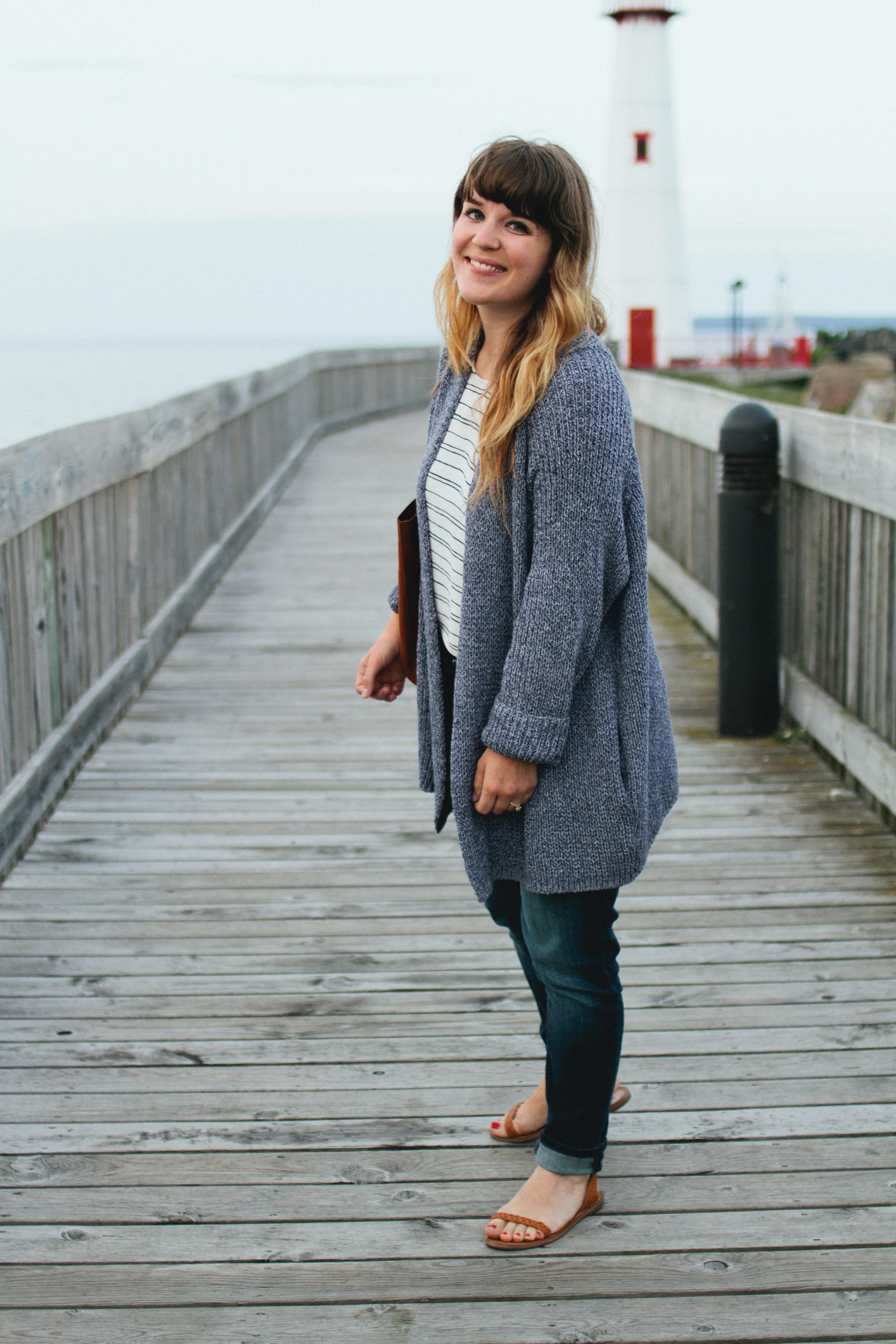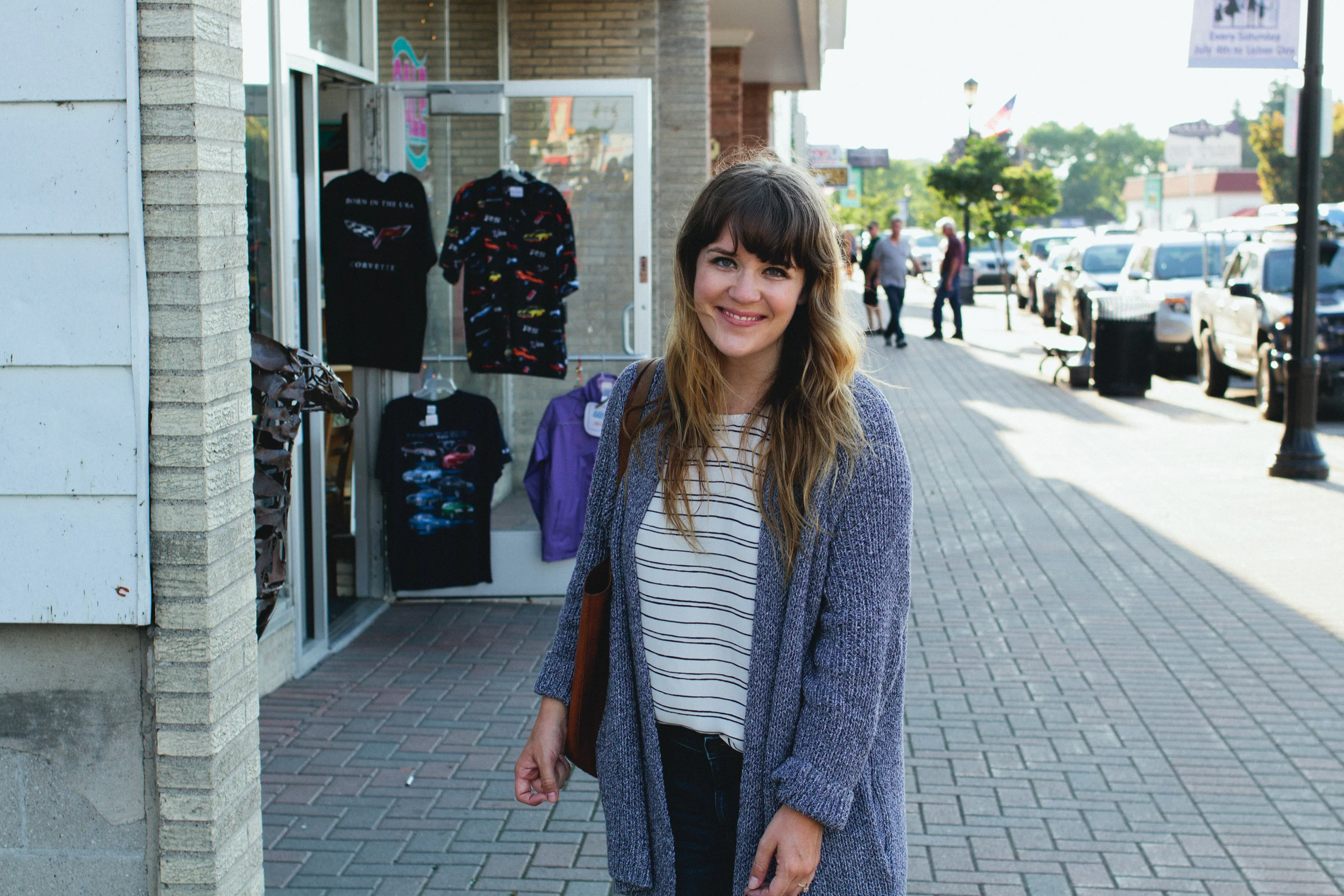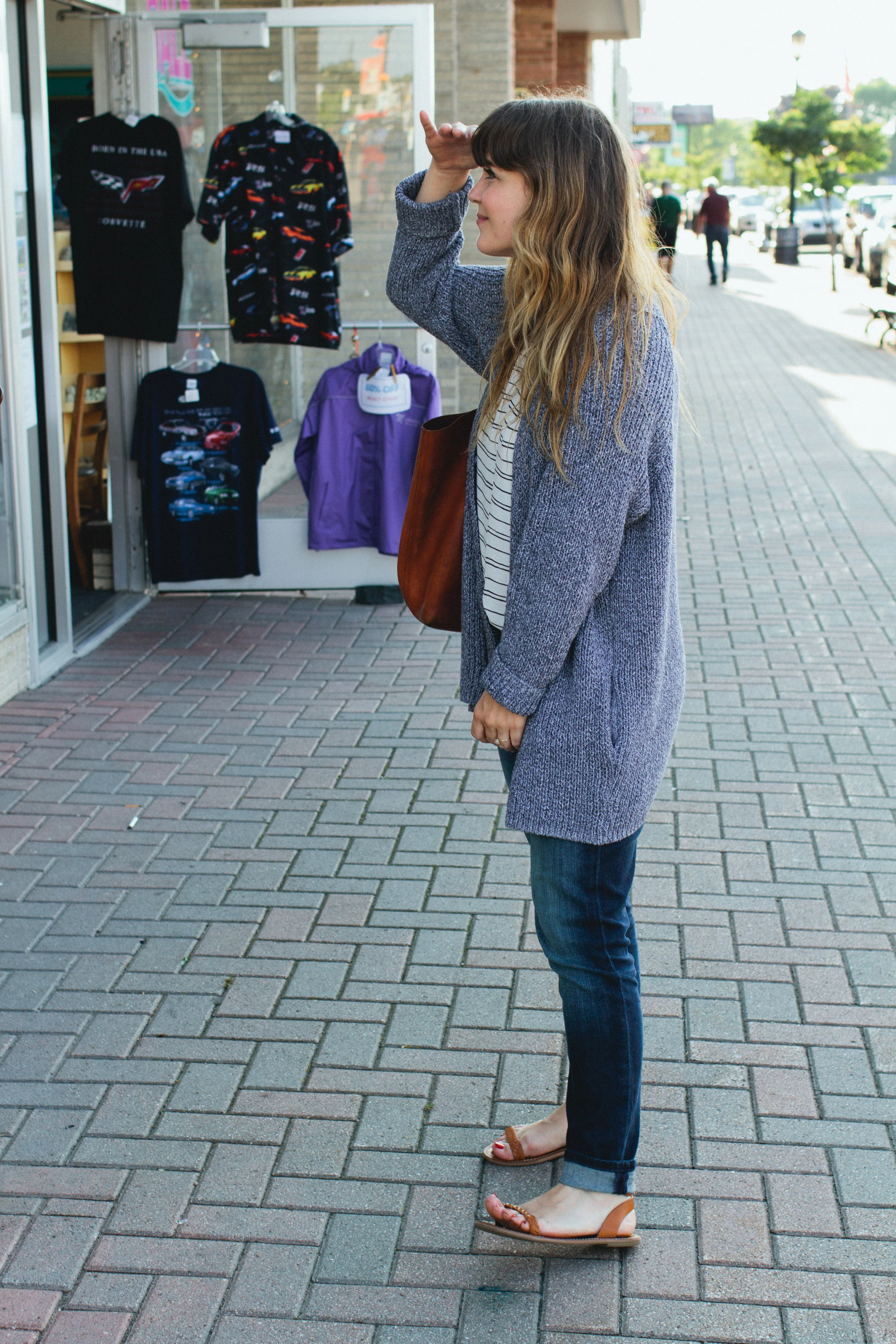 I'm glad I bundled up, because as soon as the sun went down, it was chilly! I joked on Instagram that you can still wear your thickest cardigan in summer in Michigan. It's true though! I picked up this H&M blue cardigan last winter on mega-sale, and still see it in stores, but not online, unfortunately! After strolling to the lighthouse though, we headed back downtown, watched some of the cars drive past, grabbed some hand-dipped ice-cream from Zak's and headed back to our hotel.