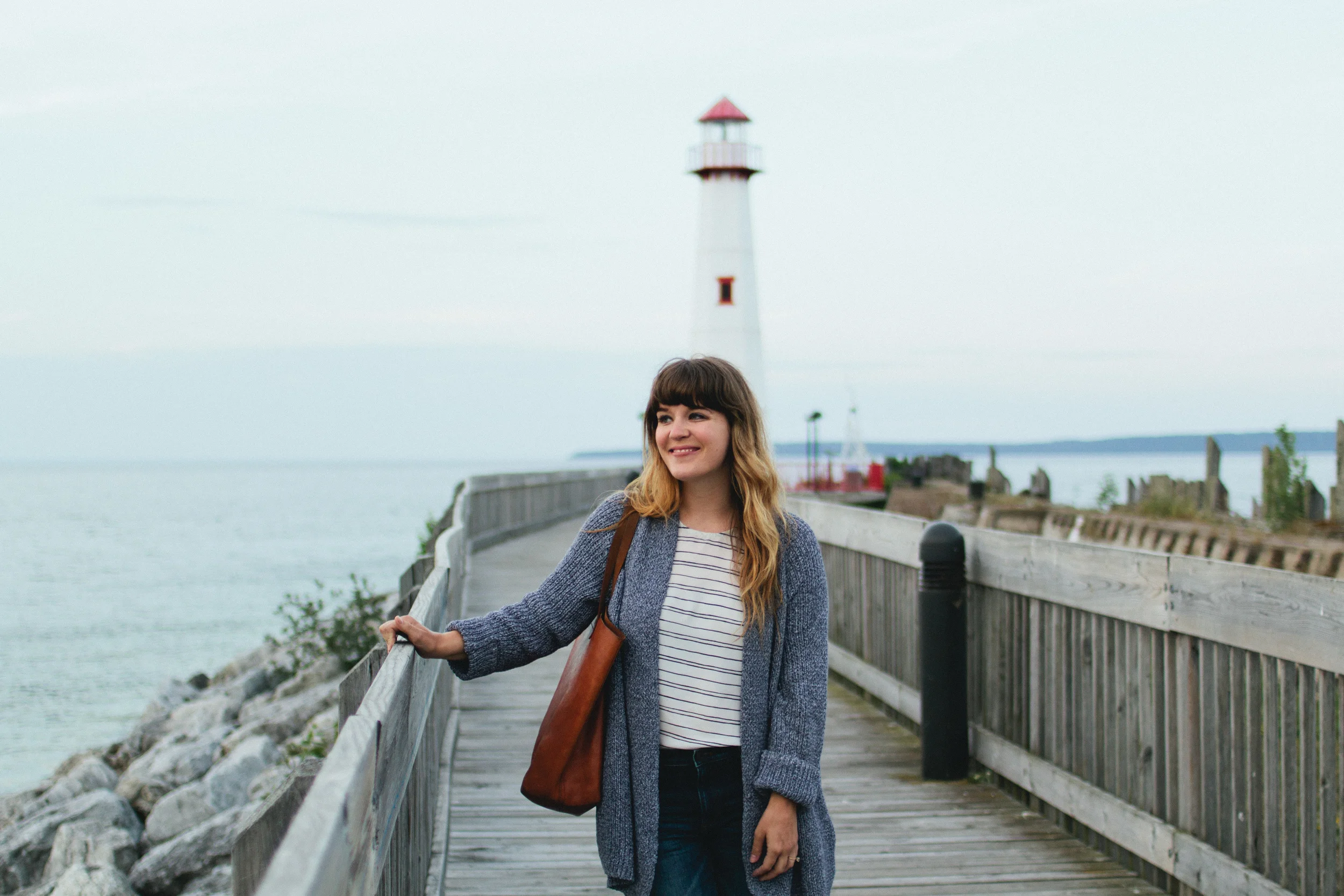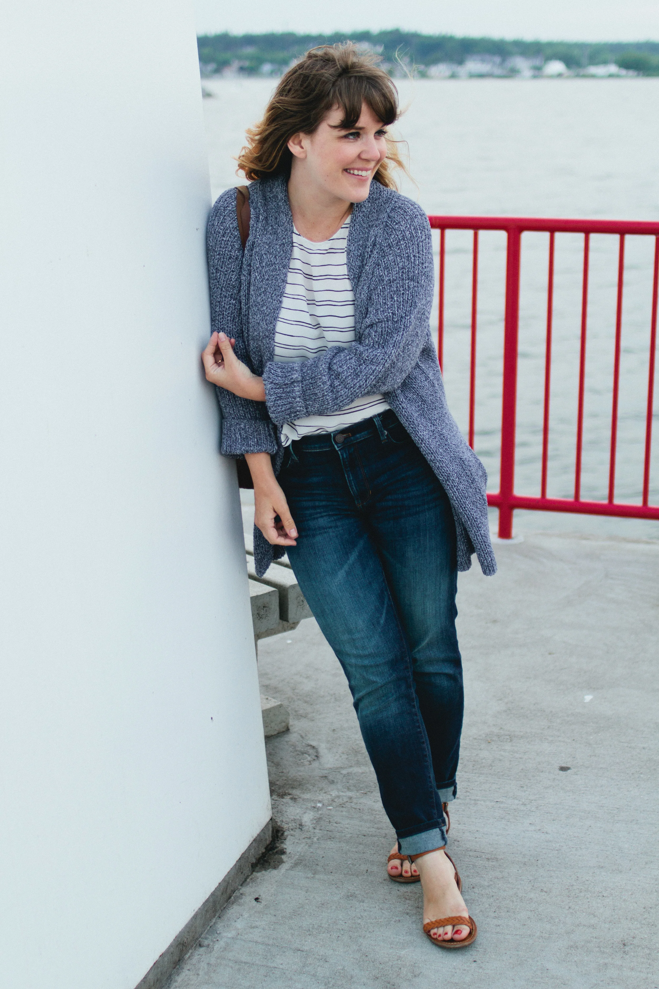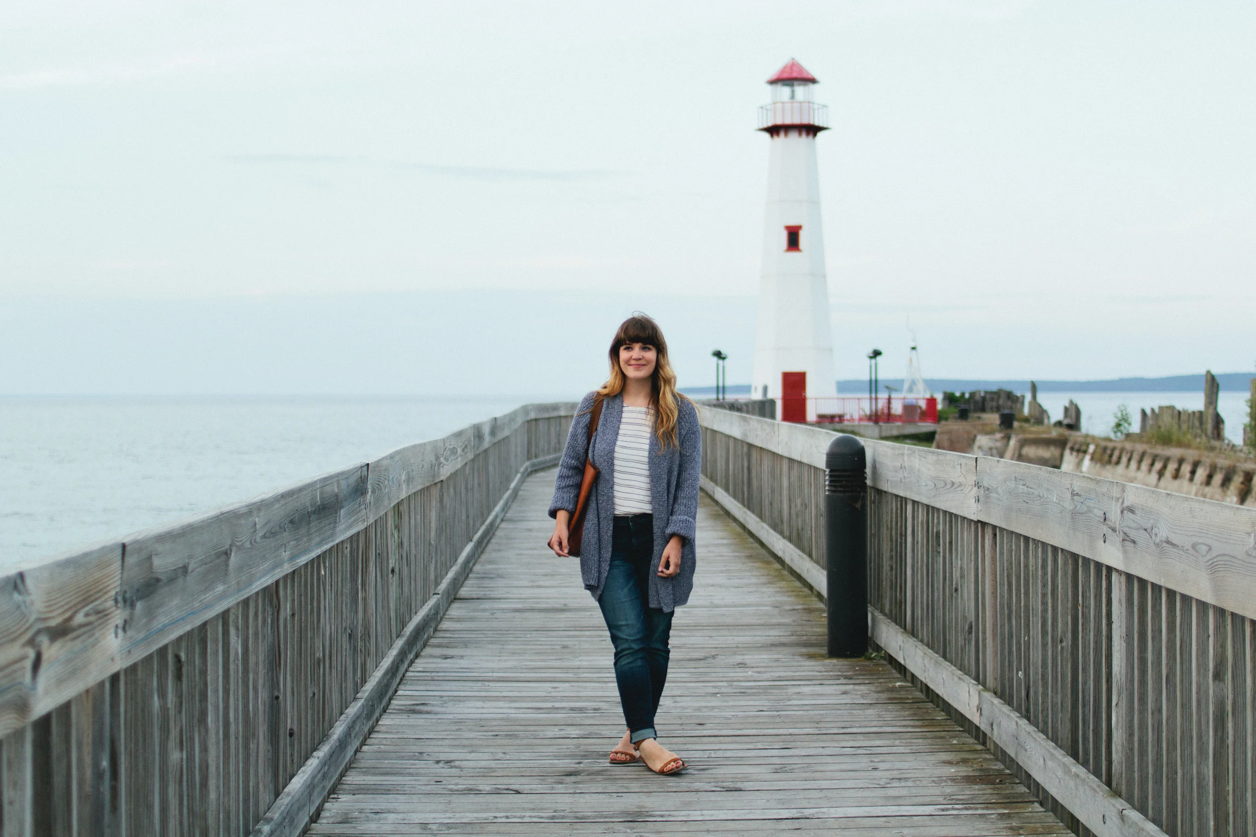 I'm glad I bundled up, because as soon as the sun went down, it was chilly! I joked on Instagram that you can still wear your thickest cardigan in summer in Michigan. It's true though! I picked up this H&M blue cardigan last winter on mega-sale, and still see it in stores, but not online, unfortunately! After strolling to the lighthouse though, we headed back downtown, watched some of the cars drive past, grabbed some hand-dipped ice-cream from Zak's and headed back to our hotel.