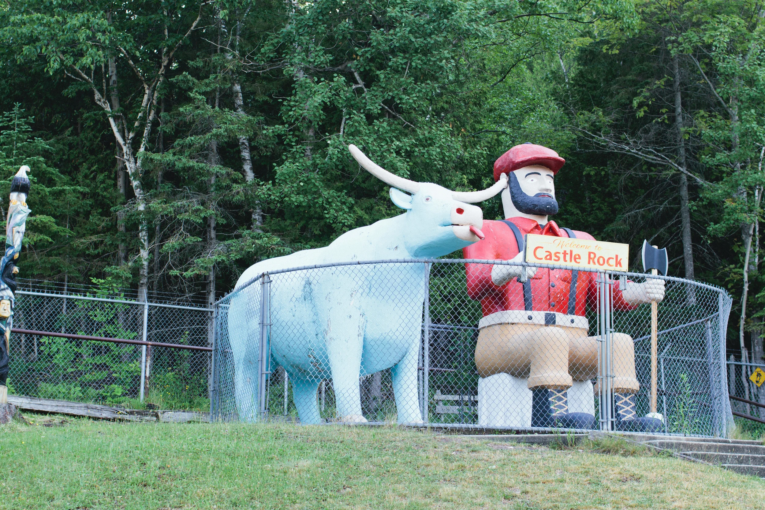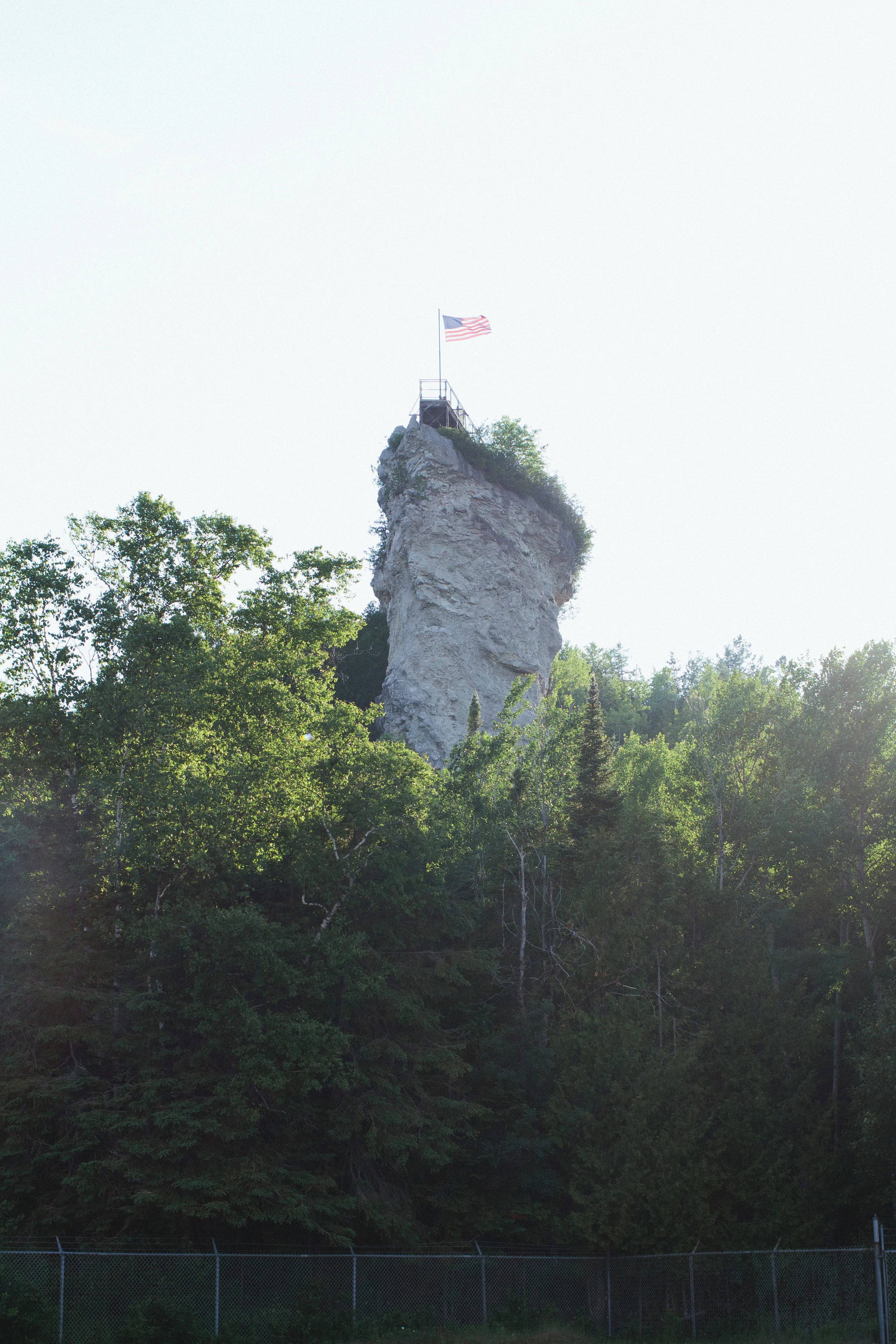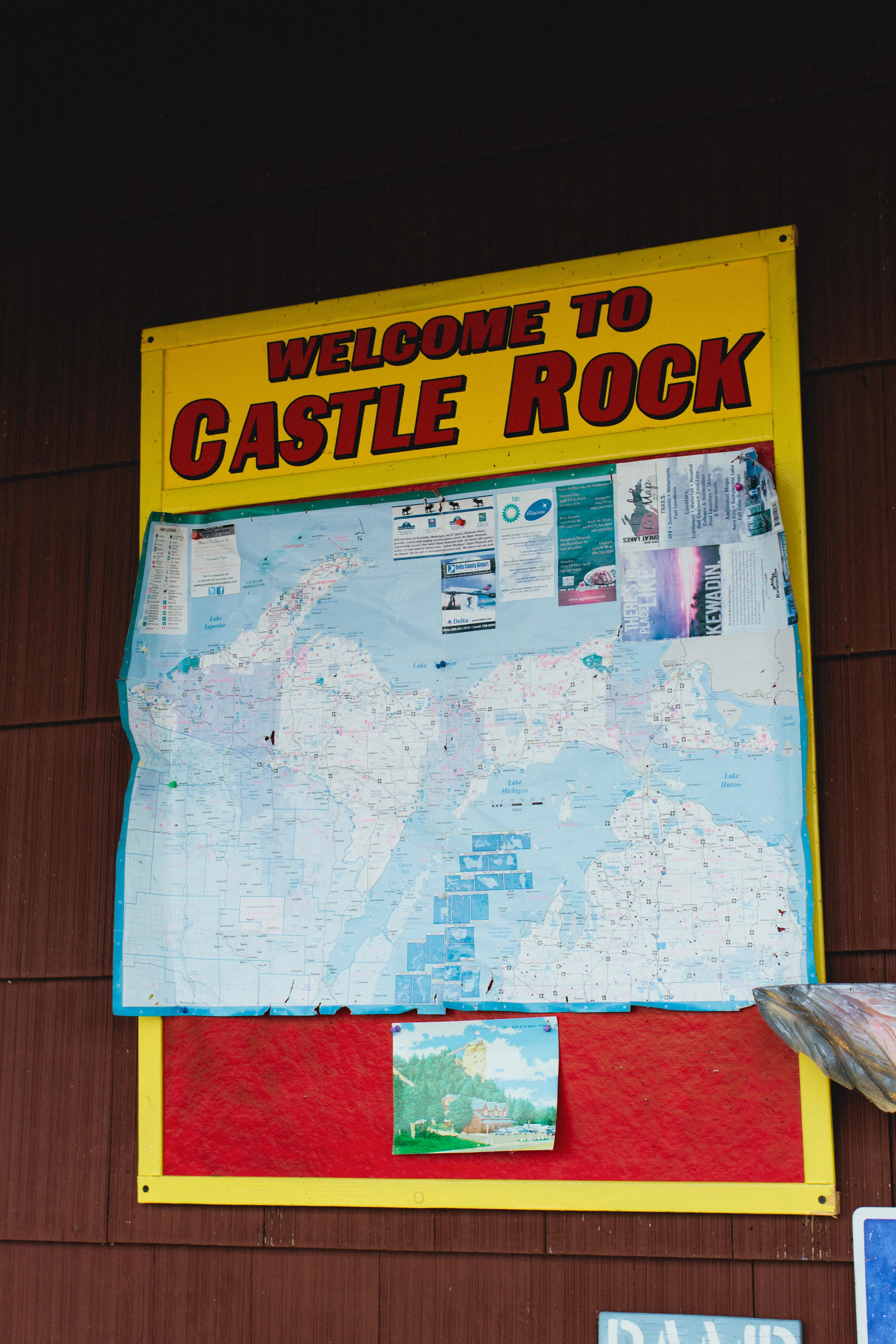 First, we drove to Father Marquette's Memorial, which was right down the street from our hotel. We parked, and ventured down the path! The memorial itself is pretty much a gazebo, with a few historical things to read and a map of Michigan painted on the floor explaining the timeline of Father Marquette's life. My favorite aspect about the memorial though was the view when you got to the end of the pathway of Mackinac Bridge. So pretty! After exploring for a bit, we drove over to Castle Rock. It's such a fun tourist trap. I love it. You pay $1 to climb to the top, and follow Paul Bunyan's footsteps the entire way. The view is well worth the dollar!