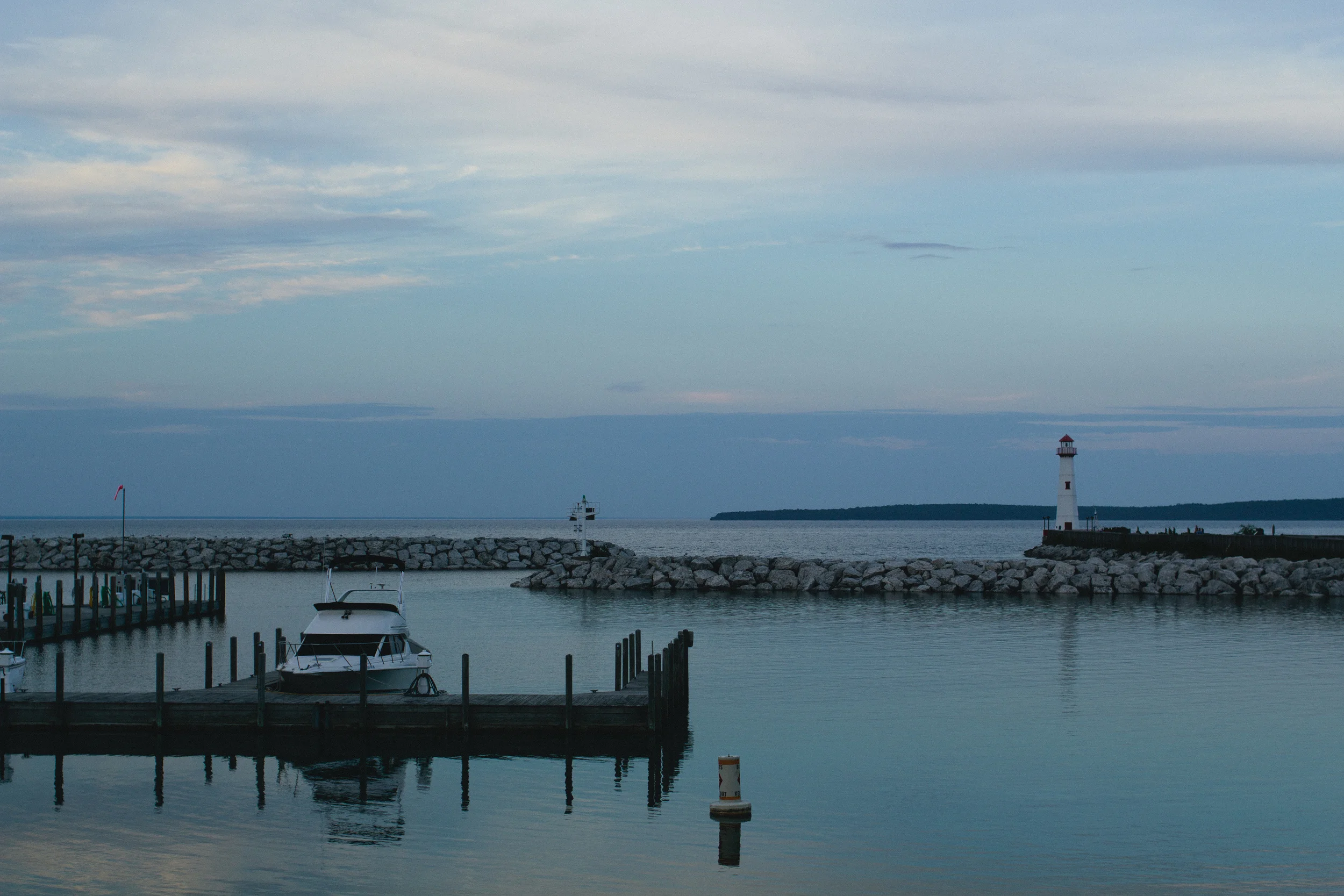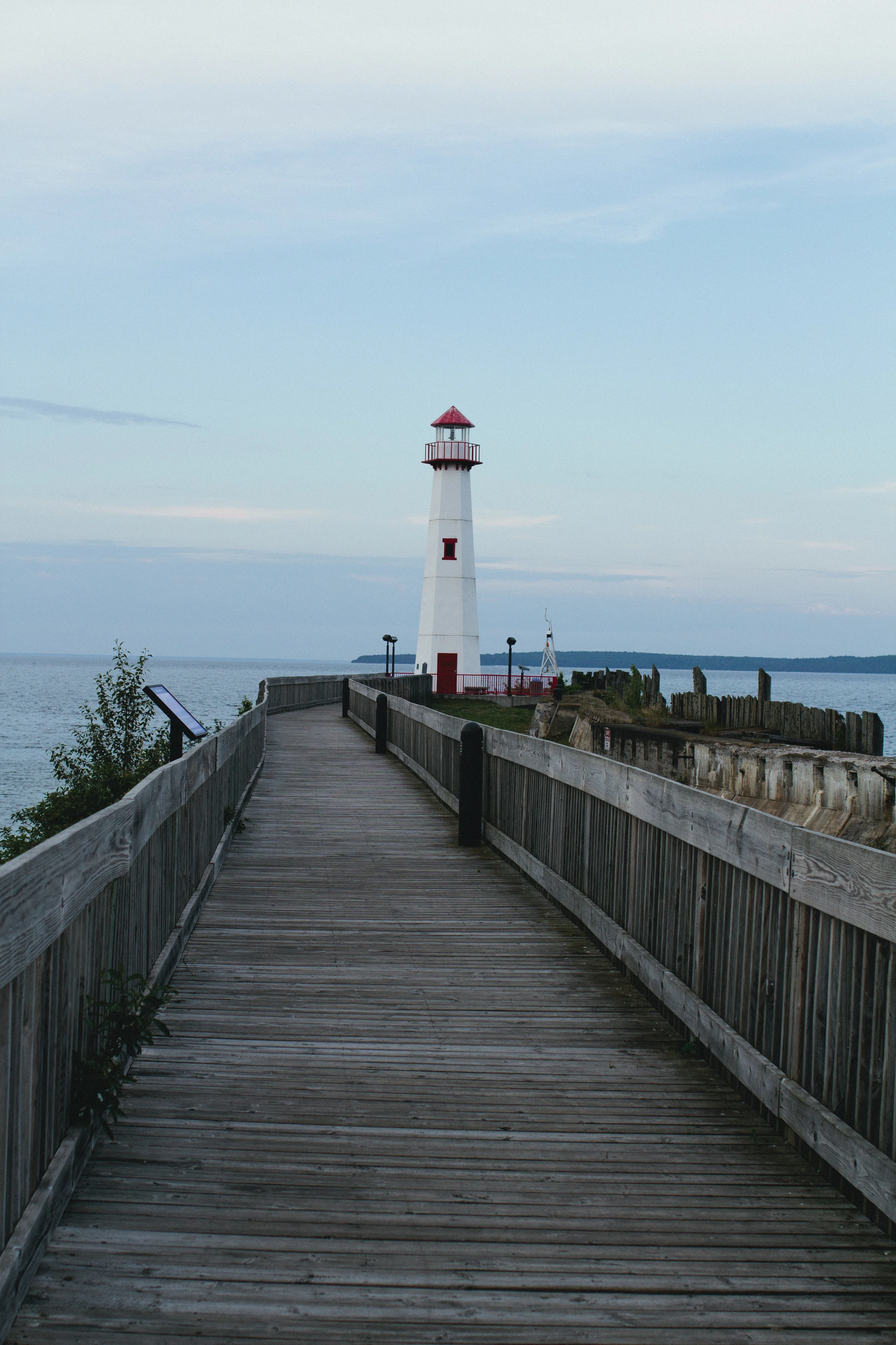 After dinner, we headed for a little stroll down to the Wawatam Lighthouse. The least historical lighthouse I've maybe ever seen, but could also be one of the most picturesque! This lighthouse was built in 1998, serving as a Michigan Welcome Center travel icon in Monroe, Michigan. In 2004, the welcome center was being revamped and the lighthouse was to be relocated, and St. Ignace was the recipient. The lighthouse was repainted, and placed finally in it's current location in 2006. Wawatam Lighthouse was first lit on August 20, 2006, and now serves as an official aid-to-navigation. Pretty neat, right? Especially considering most of the lighthouses I saw on my trip were from the 1800s!