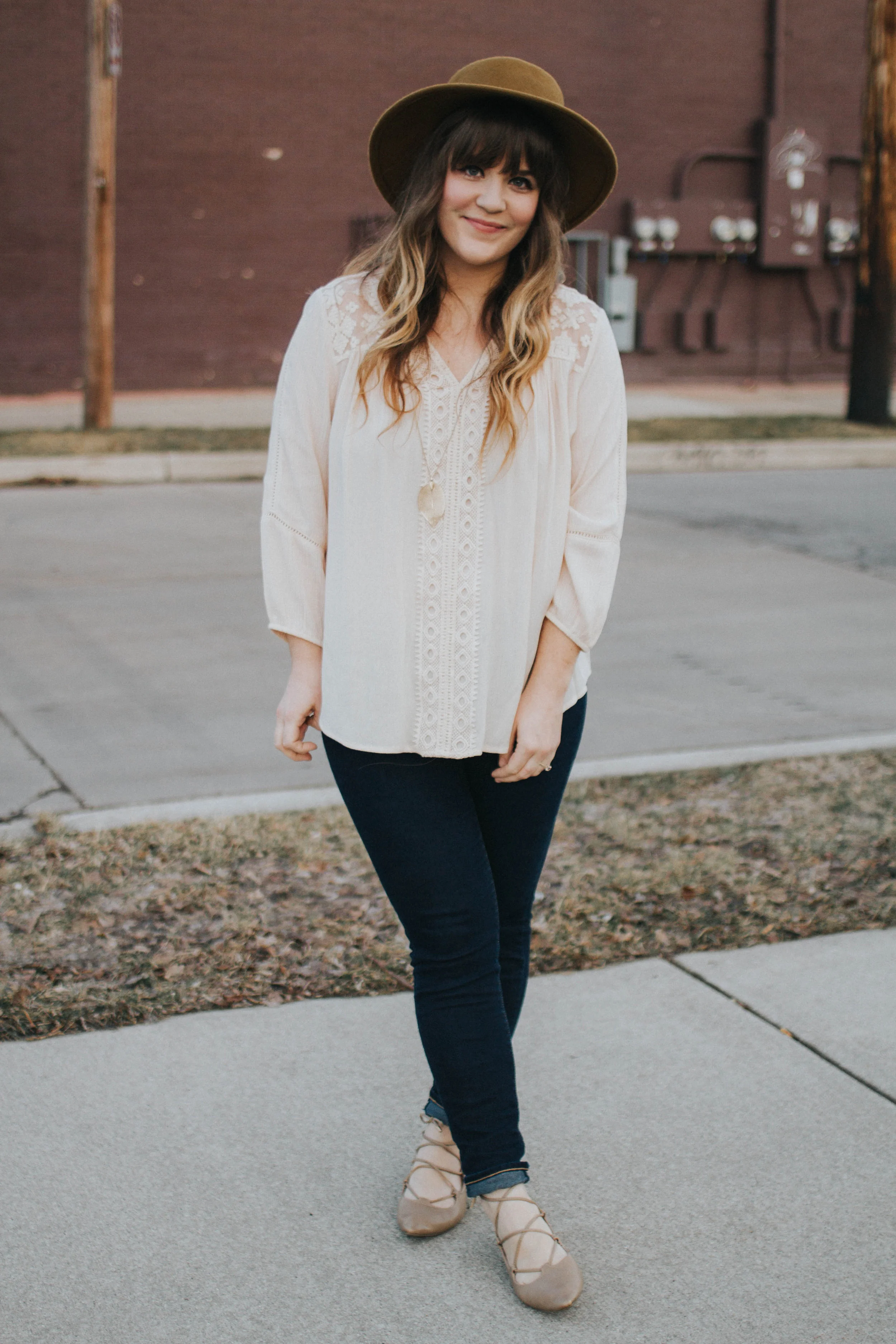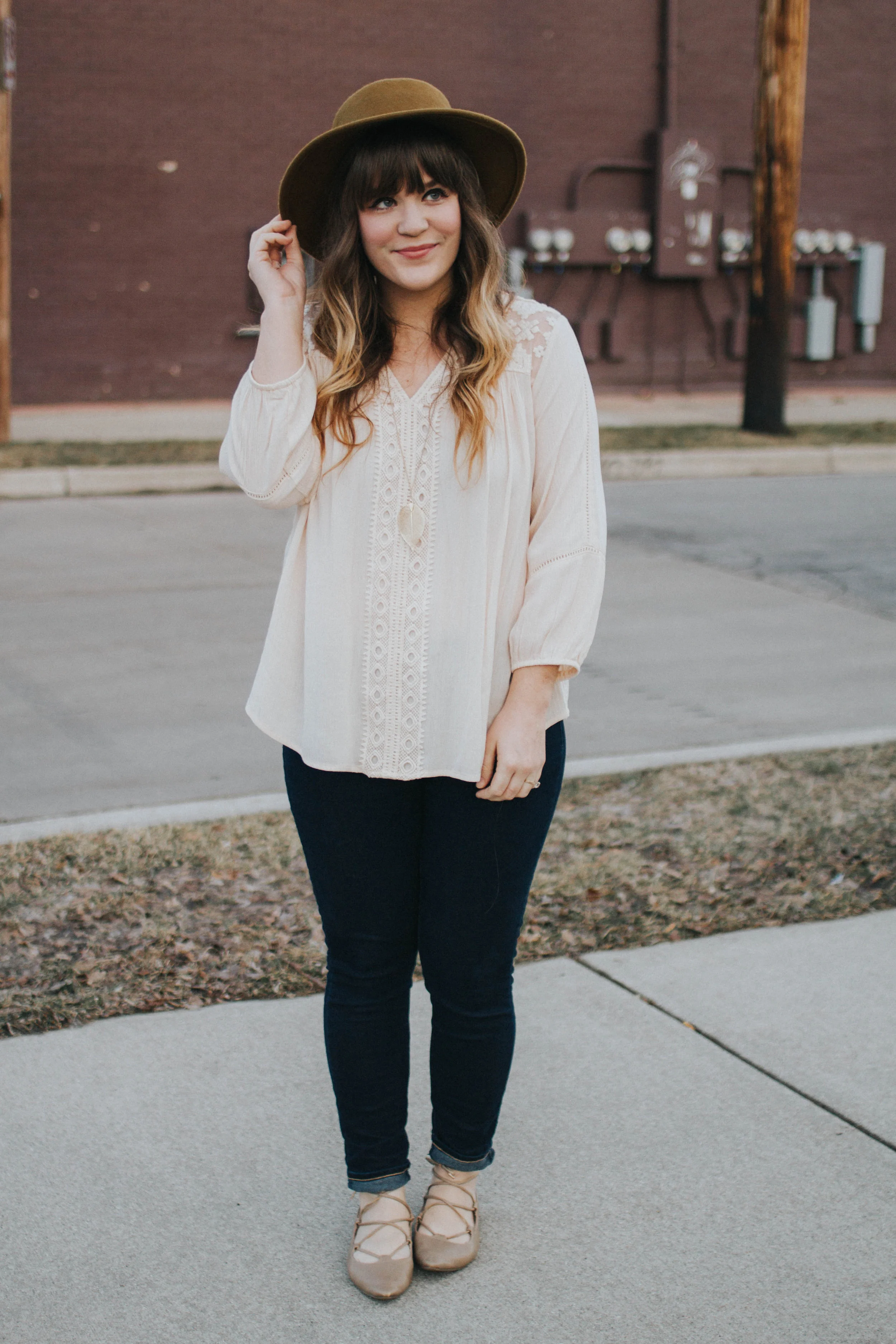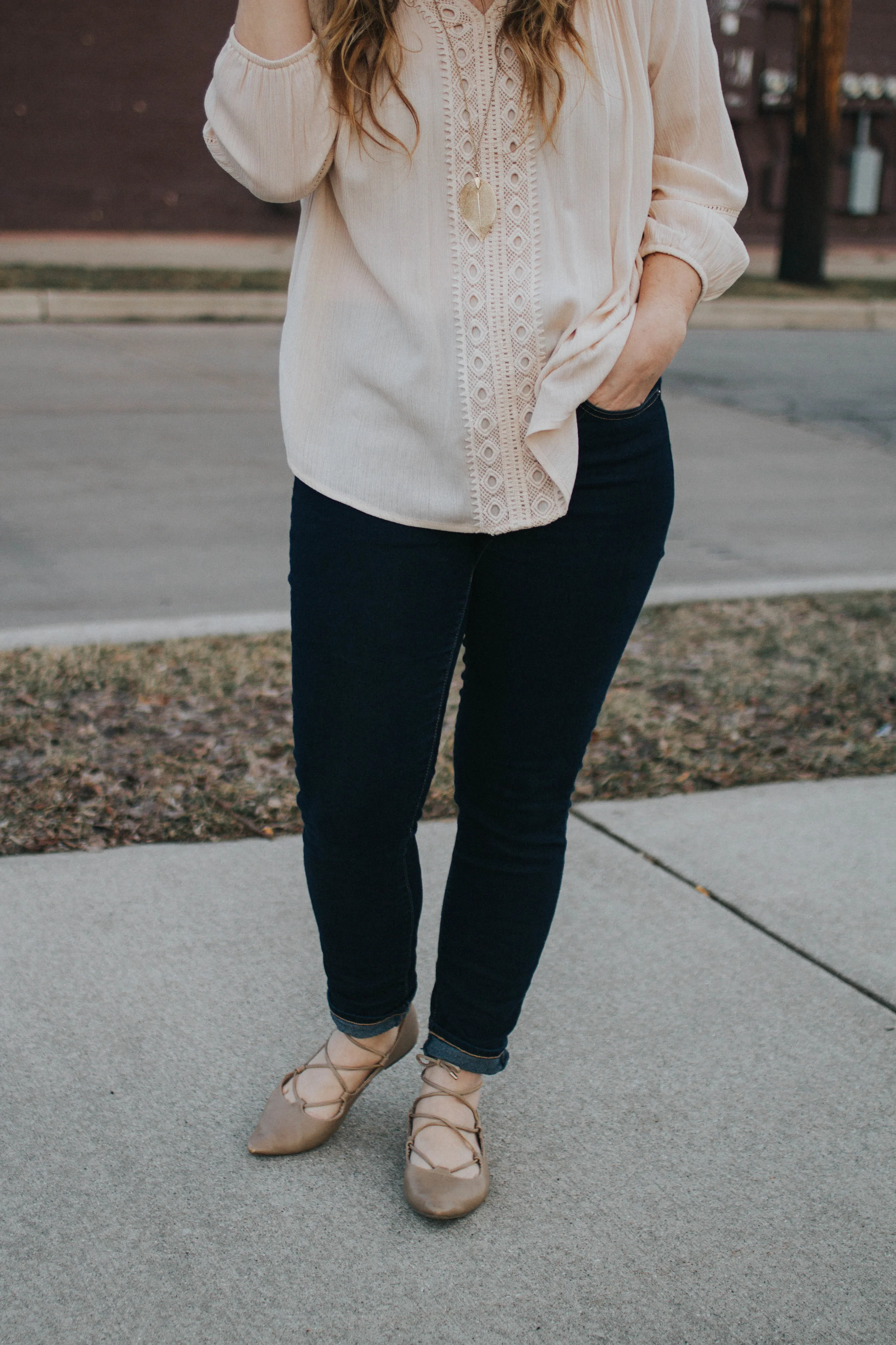 I've been working on an upcoming collaboration with Meijer Style, and spotted this adorable top in their store... and love it! In my closet challenge, I've been going through and kind of documenting my style "vibe". Right now, I've landed on... feminine, folk style, casual, and girl next door. I'm not totally sure if that's accurate yet, but that's where I'm at right now. I don't say bohemian, because while I do love the boho trends and styles, I'm just not a bohemian dresser. So folk style seemed to be a little less extreme, if that makes sense. But this top to me definitely says "folk style"!