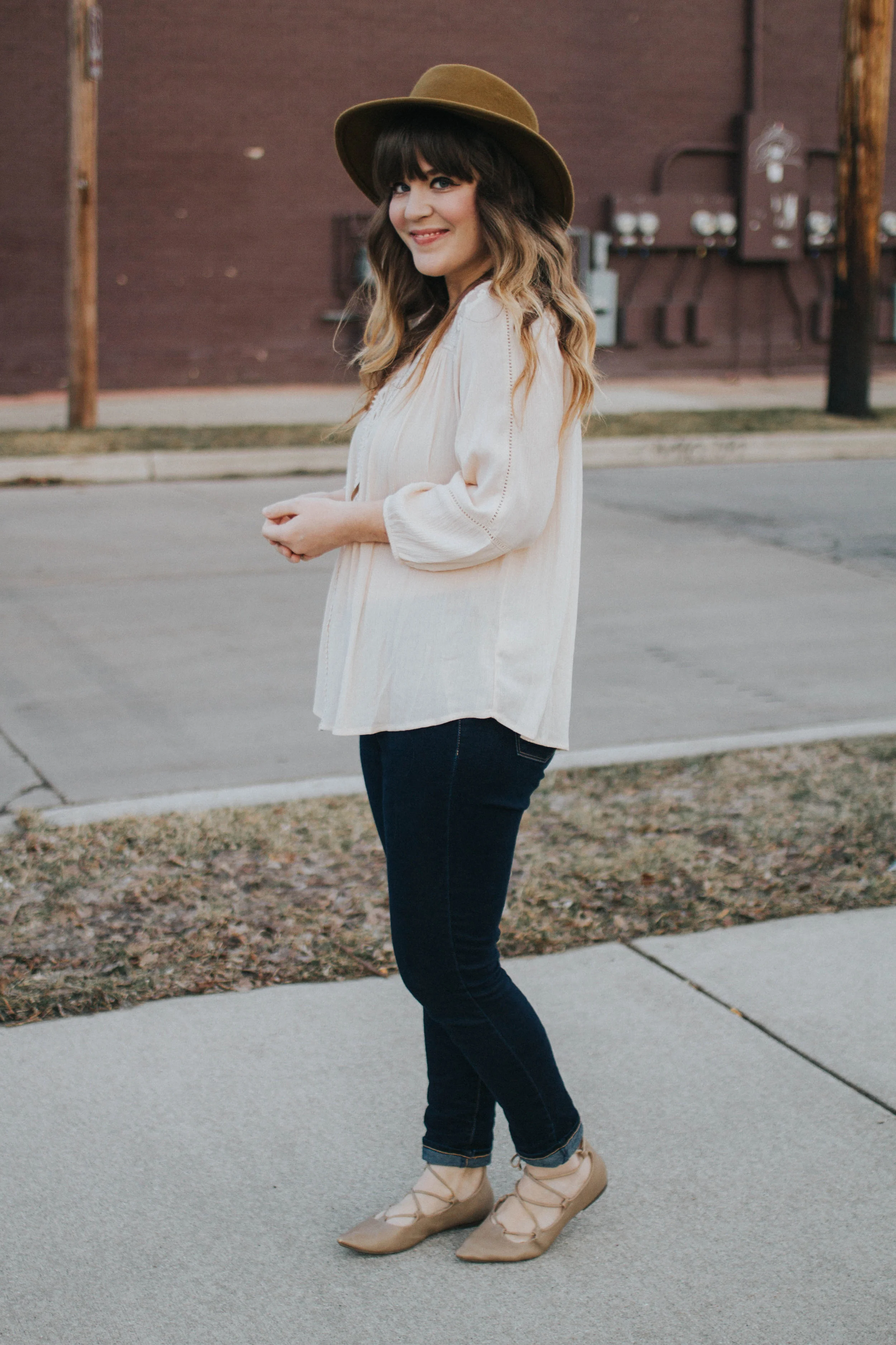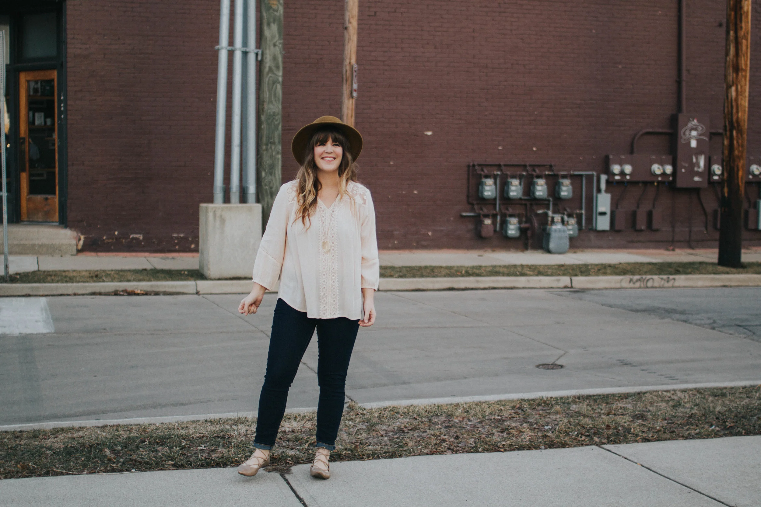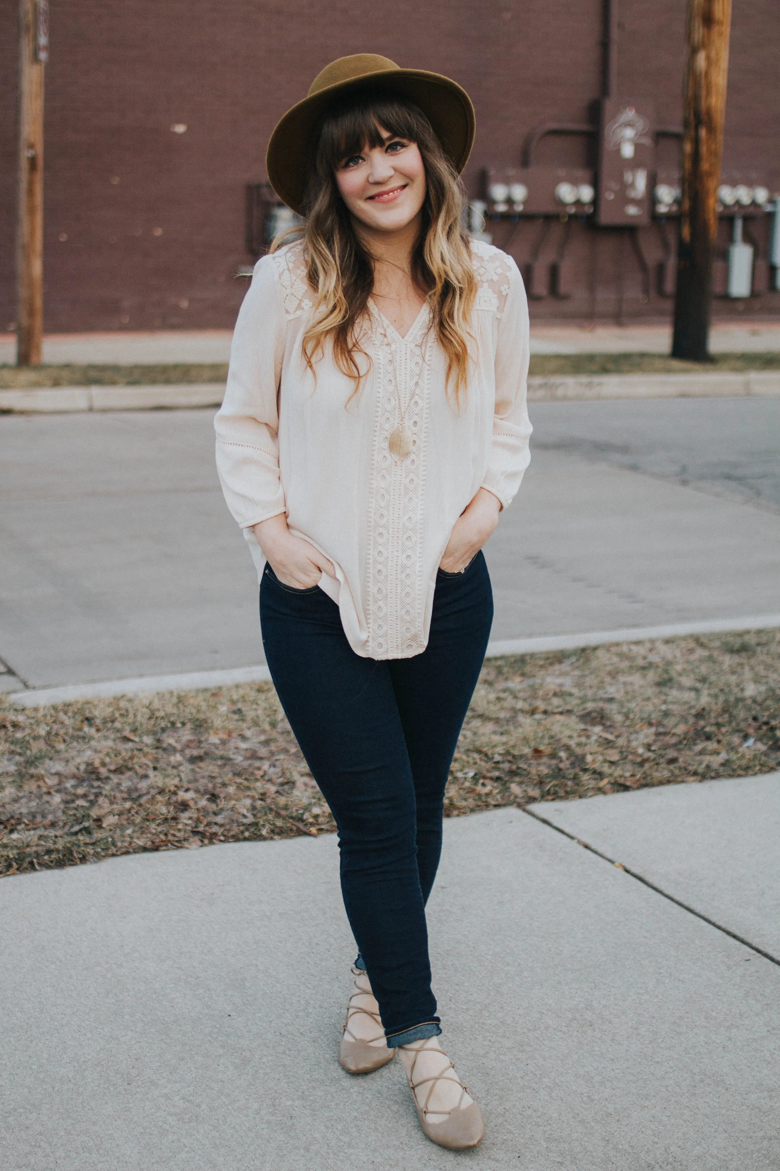 I've been working on an upcoming collaboration with Meijer Style, and spotted this adorable top in their store... and love it! In my closet challenge, I've been going through and kind of documenting my style "vibe". Right now, I've landed on... feminine, folk style, casual, and girl next door. I'm not totally sure if that's accurate yet, but that's where I'm at right now. I don't say bohemian, because while I do love the boho trends and styles, I'm just not a bohemian dresser. So folk style seemed to be a little less extreme, if that makes sense. But this top to me definitely says "folk style"!