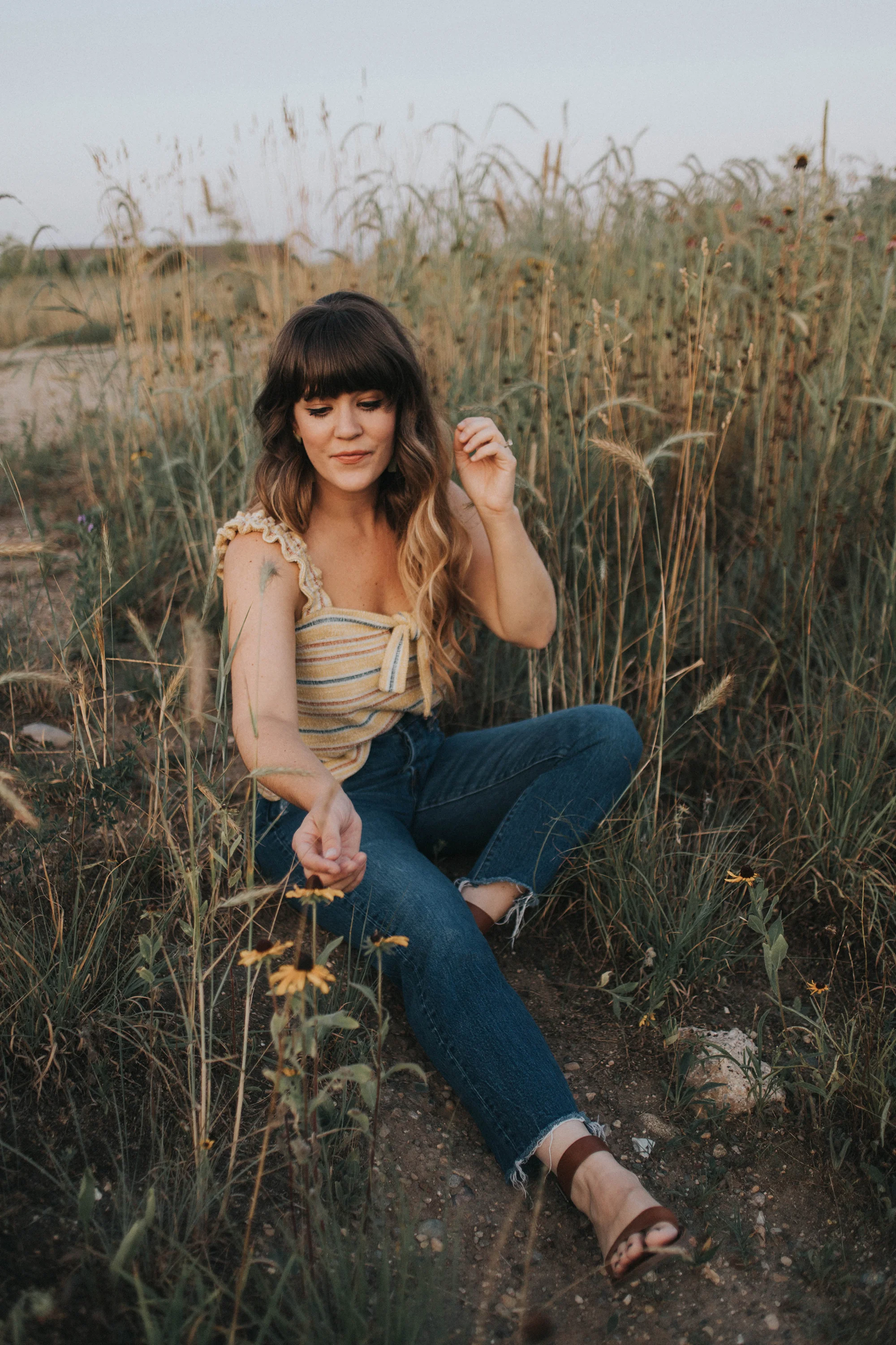 This is the cute yellow version of this tank I picked up at Madewell! I got it a few weeks ago, when I drove all the way to Ann Arbor literally just to go shopping at Madewell. Hahaha, ugh. Usually I order everything online, but sometimes it’s fun to go and try a bunch of things on in person! It’s a bummer the closest one is 2.5 hours from us… but I heard a little rumor that might be changing in autumn. 😆 So yeah! This outfit has definitely been on repeat. This tank is just an easy statement piece because of the ruffle straps and front tie. They still have it in stock too, so head over and scoop it up!