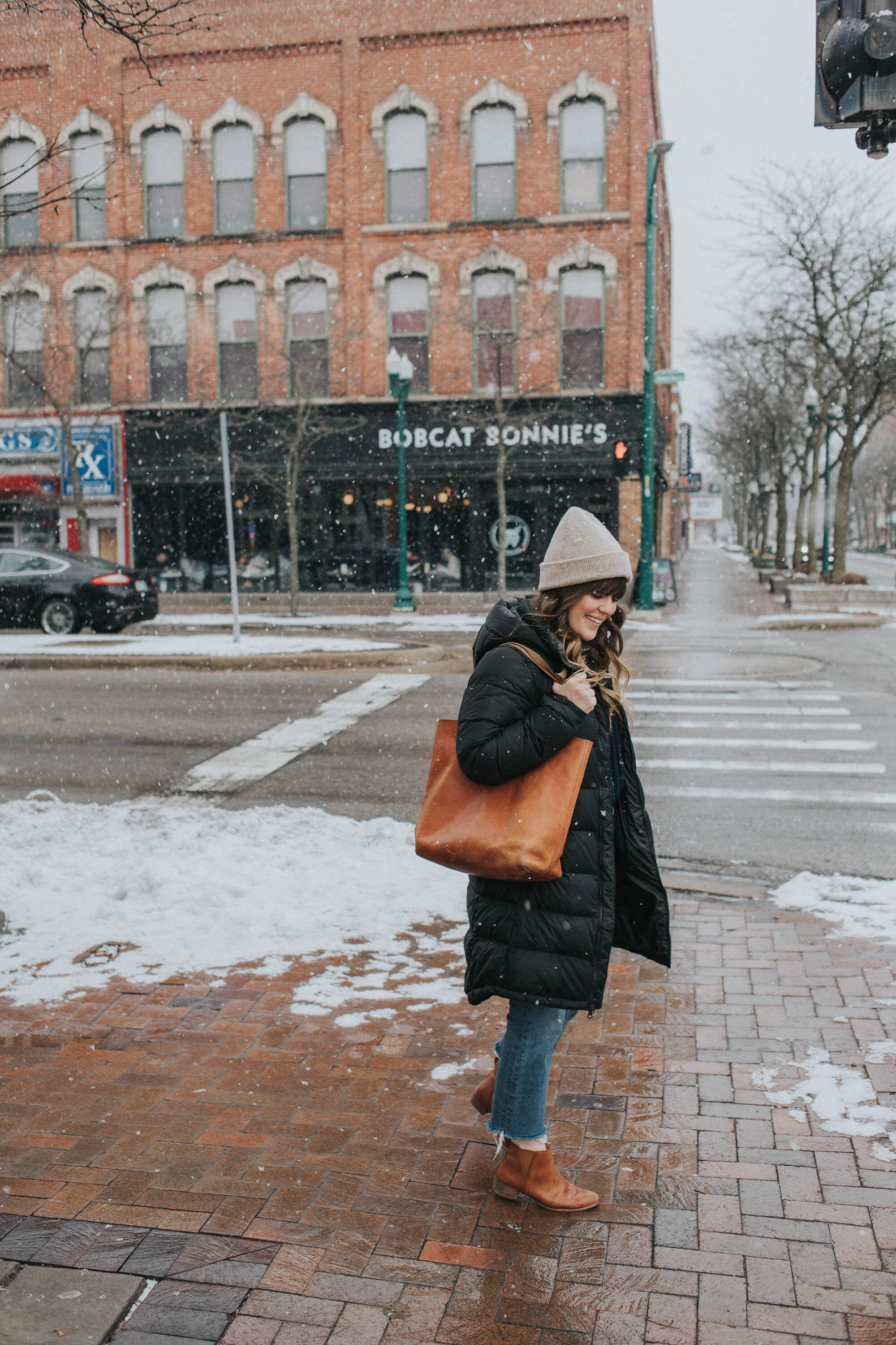 These photos were snapped a couple of weeks ago during a super quick trip to Ann Arbor! It wasn’t my favorite weekend — I don’t know, I just don’t think I love traveling in winter, unless it’s somewhere else that’s warm. But yeah, it was really cold, hard to walk around Ann Arbor, saw a concert I wasn’t crazy about, IDK, not my favorite trip, kinda depressing vibes… but that’s okay! I did stop to Ypsilanti to have brunch at Bobcat Bonnie’s and that was good… so that was one perk for sure. But yeah, this is basically my winter uniform. I live in this North Face parka, along with these boots and my Madewell cuffed beanie. If you ever spot me out & about, this is likely what I’ll be wearing. 😁 So yeah, not much of an update today, but here it is! See ya! xo