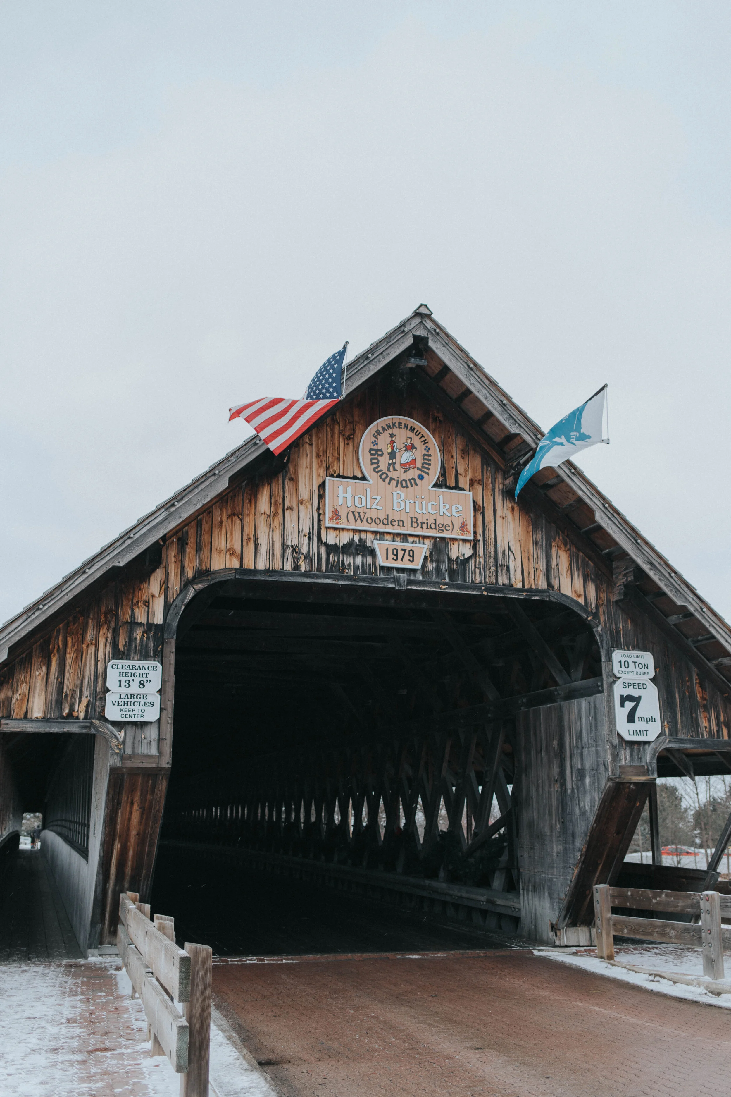 This bridge is Michigan’s largest covered wooden bridge! It’s a precious piece of Frankenmuth’s history. Holz Brücke is German for “wooden bridge”. Some call it Holz Brücke, some call it the Wooden Bridge, some call it the Covered Bridge. When I was walking through, there were several people snapping photos in the bridge and you’re also able to drive through… two-lanes, with two sidewalks on both sides. It connects Frankenmuth’s Main Street to land just across the Cass River. It was completed in 1979, is 230-tons and stretches 239 feet across! Definitely worth a quick jaunt across if you’re visiting Frankenmuth.