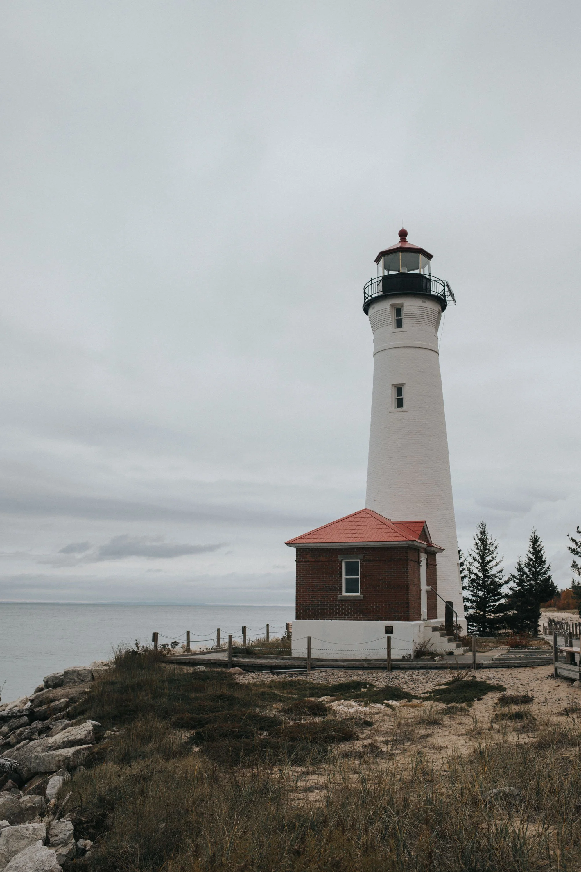 I’ve been to Crisp Point two times before… but never while I’ve lived in the Upper Peninsula! I was on my way from Laughing Whitefish Falls to Tahquamenon Falls… and was driving along, had a little time to kill, so I thought maybe I’d pop up to Whitefish point, but then I saw a sign for Crisp Point Lighthouse… and was like, ooh! It says “14 miles this way” and I was like… that’s not bad at all! But it’s actually more like 18 miles, and it’s a definite 45-minute each way on a very bumpy, windy, dirt road. I was getting a little panicked halfway through, thinking maybe I should turn around, storm clouds were looming, I didn’t want to get stuck on this road in the mud, but I kept pushing along, and got to the lighthouse. But honestly I didn’t stay too long, was a little scared (I mean it is spooky season!) and so I snapped some photos and got back on the road. But this is a beautiful lighthouse, very remote, the road really isn’t that bad, my hatchback made it very easily, but it’s just definitely a bit time consuming to get to. Definitely worth a trip. Maybe… with a buddy. 😆
