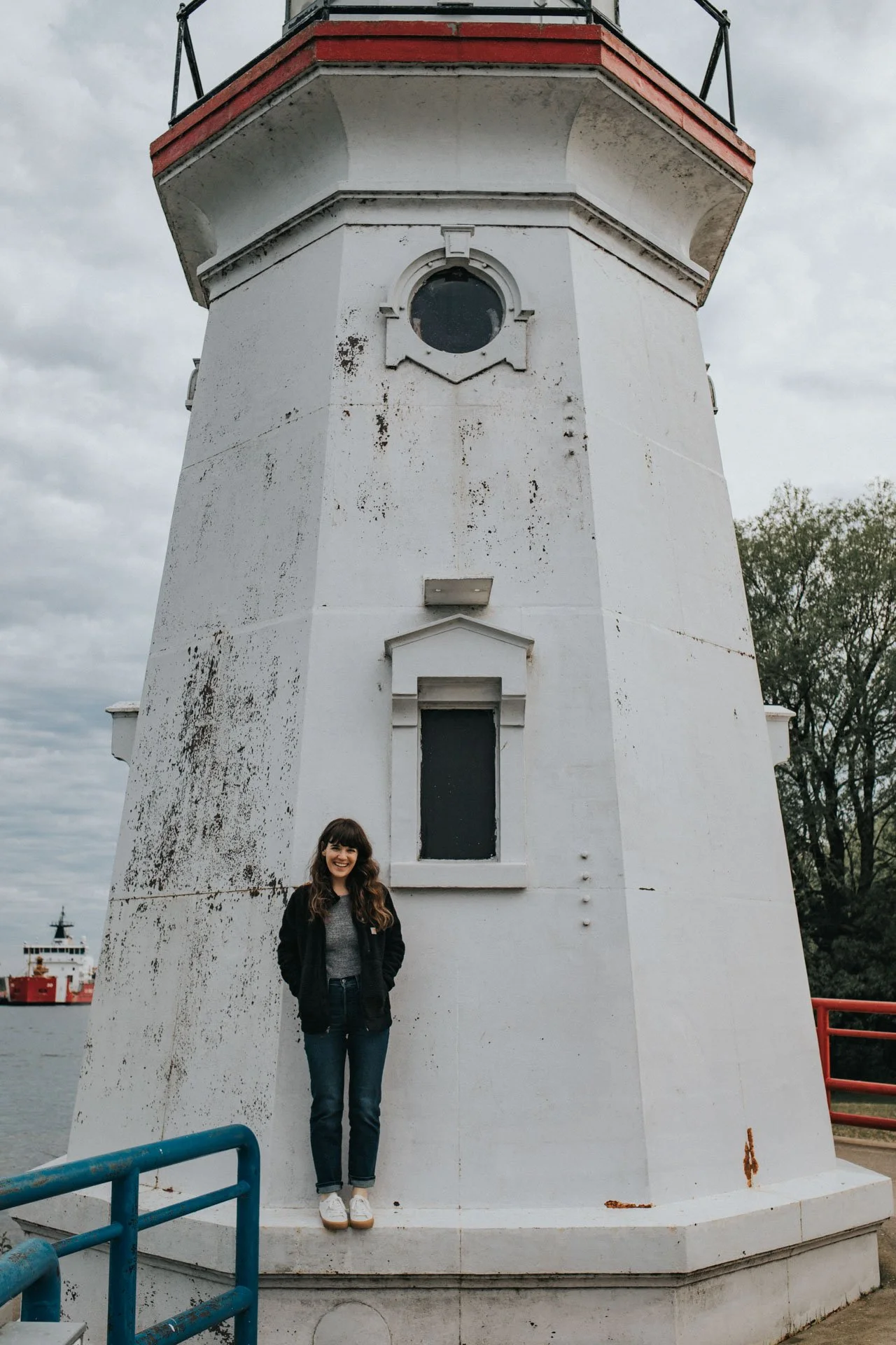 The Cheboygan Lighthouses! It was easy peasy to check off these three on the list of lighthouses left to see. #101, #102, and #103. The weekend of my 100th lighthouse, St. Helena Island Light, we got off the boat, reset at the hotel for a little bit, and drove over to Cheboygan (about 30 minutes from Mackinaw City) to see these very accessible lighthouses… all located within five minutes of each other. The Front Range Light is set back a bit on Water Street, sort of in an industrial area, and is normally open for tours/a little gift shop, but we arrived outside of open hours. The Crib Light & Pier Light are located just five minutes north in Turner Park. I loved the Crib Light most… it’s just a cute little lighthouse before you take a walk on the pier!