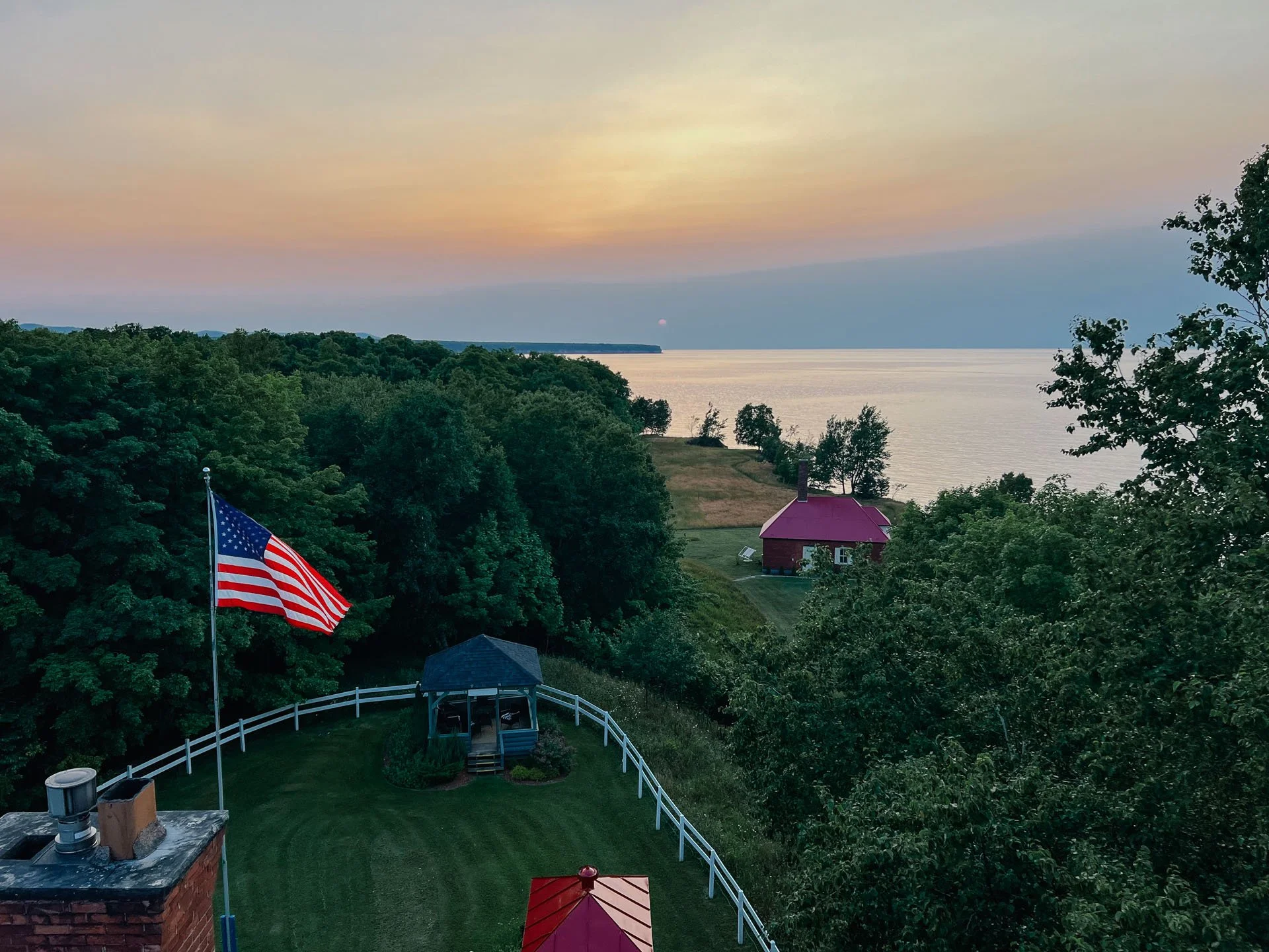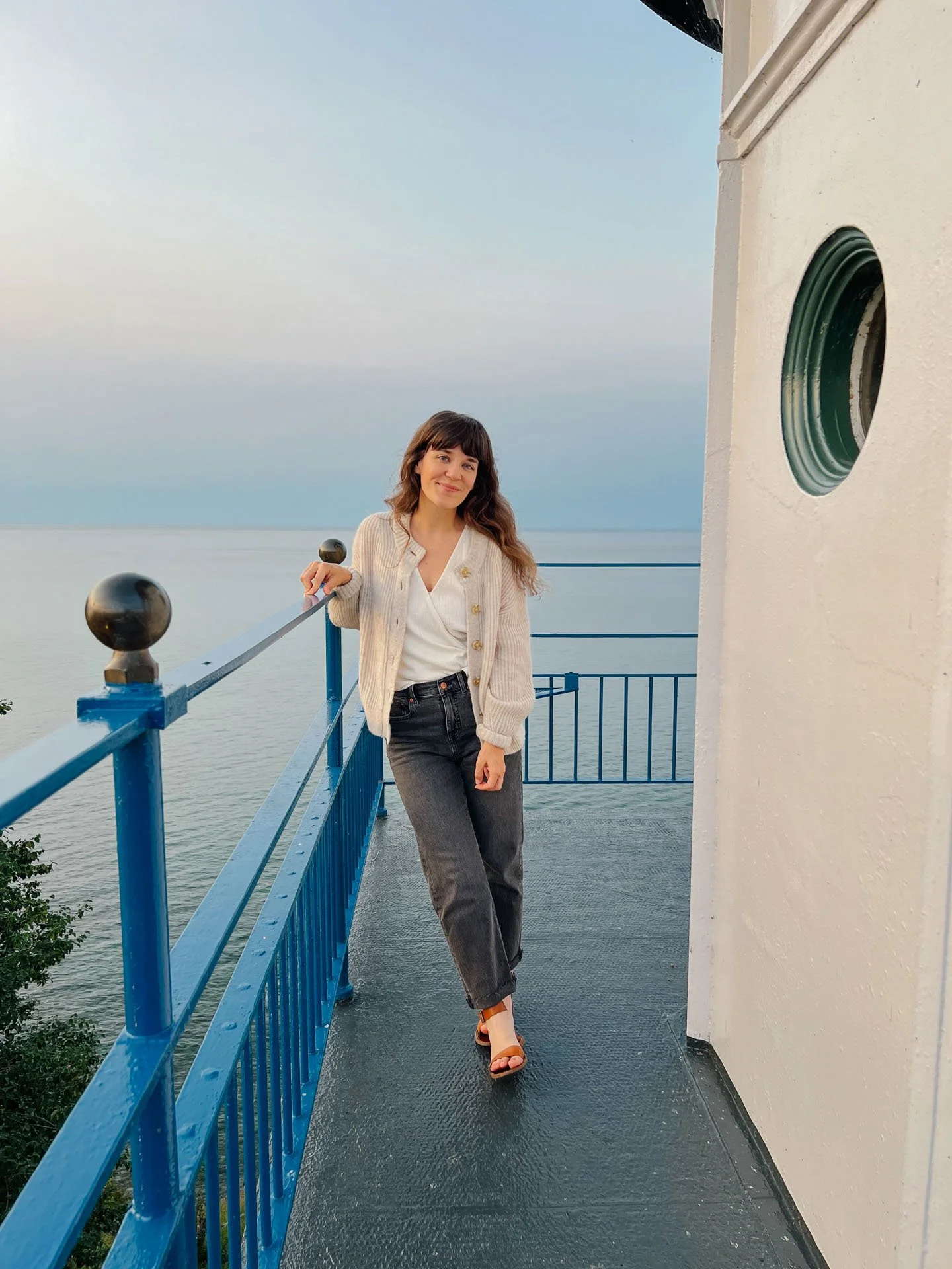 The next morning, we woke up for sunrise! We headed back to the top of the tower, since it’s such a unique opportunity that we don’t get to participate in unless we’re guests here, so we wanted to take advantage of it! We didn’t get to see the sun rise, it was very cloudy, but a tiny touch of pink in the clouds, and it was a beautiful morning! Very breezy though, and very much felt like pre-fall vibes. And I’m just not ready yet! I absolutely adore fall, it’s absolutely my favorite season, but I just want July to be July, August to be August, etc. Ready for a little warmth yet this summer! But it was a beautiful morning, and we took a nice nap after sunrise, and woke up in time for a beautiful breakfast the lighthouse keeper prepares for the guests, and we ate that outdoors in the gazebo. A delightful slow morning of cozy.