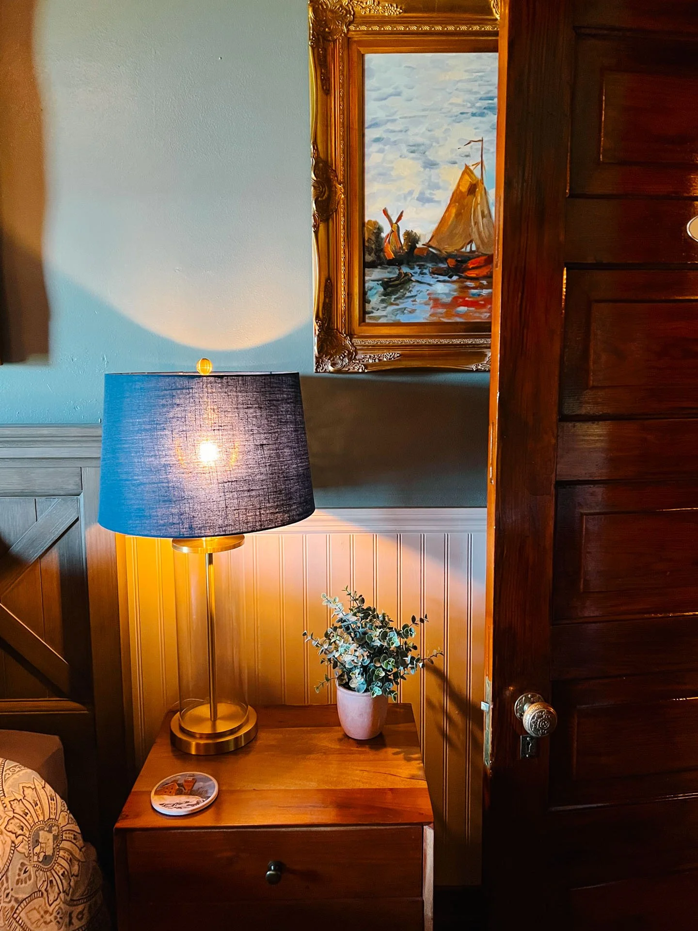 The lighthouse was converted into a bed and breakfast in 1986, and includes five guest rooms with private bathrooms, and was bought/renovated into what it is today in 2018. It’s open to stay as a bed and breakfast mid-May through November 5th. (I can only imagine an autumn stay here. Oof! 🍂) We stayed in Assistant Beamer, which was such a cozy room with a private bathroom, TV, and Lake Superior views, just… stunning. We first checked in, got settled, toured the lighthouse a bit, walked around the grounds and sat outside to take in the views before heading out to dinner.